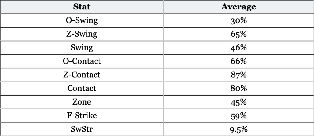 As we can see above, Kieboom is more likely to take pitches on the lower-outside part of the strike zone. His patient outlook is supported by a 35.7% Swing percentage, 24.2% O-Swing percentage, and 49.4% Z-Swing percentage. All of these are well below league-average estimates. Unsurprisingly, his BB/K ratio surpassed the (Major League) average of 0.4 at A, high-A, and AAA.