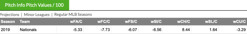 As for improving his game, progress with his glove should be natural. Even if his ceiling is limited as a fielder, his arm compensates for some miscues, and he is playing a position that typically asks for offensive production. At the plate, Kieboom showcased the ability to do damage against changeups and sliders, but was frighteningly below-average against essentially everything else. This can be seen by his PV/100, which attempts to quantify his success for each pitch while compensating for varying sample sizes. Cleaning up his game against high-velocity pitches will be paramount for his offensive production. He can hit off-speed pitches in limited doses, but will need to improve against fastballs before they’re the only thing he sees. Said improvement could work wonders in gathering him more favorable pitches, creating more contact, and with his power, extra-base hits.